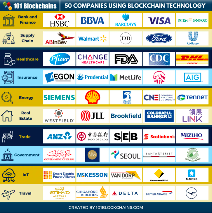 And here is an example of 50 companies using blockchain technology, the same technology that is behind cryptocurrencies.